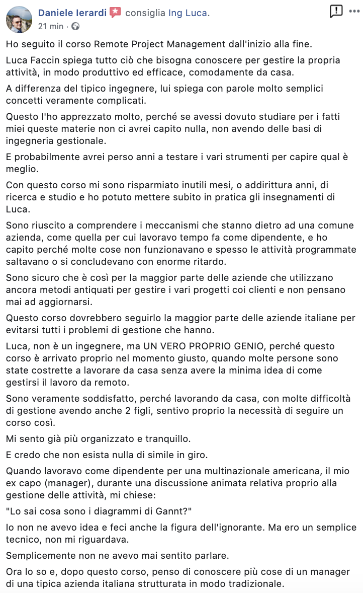 Luca Faccin è un Project Manager derivato dal settore della progettazione industriale. Oggi dirige progetti di sviluppo business sul web.